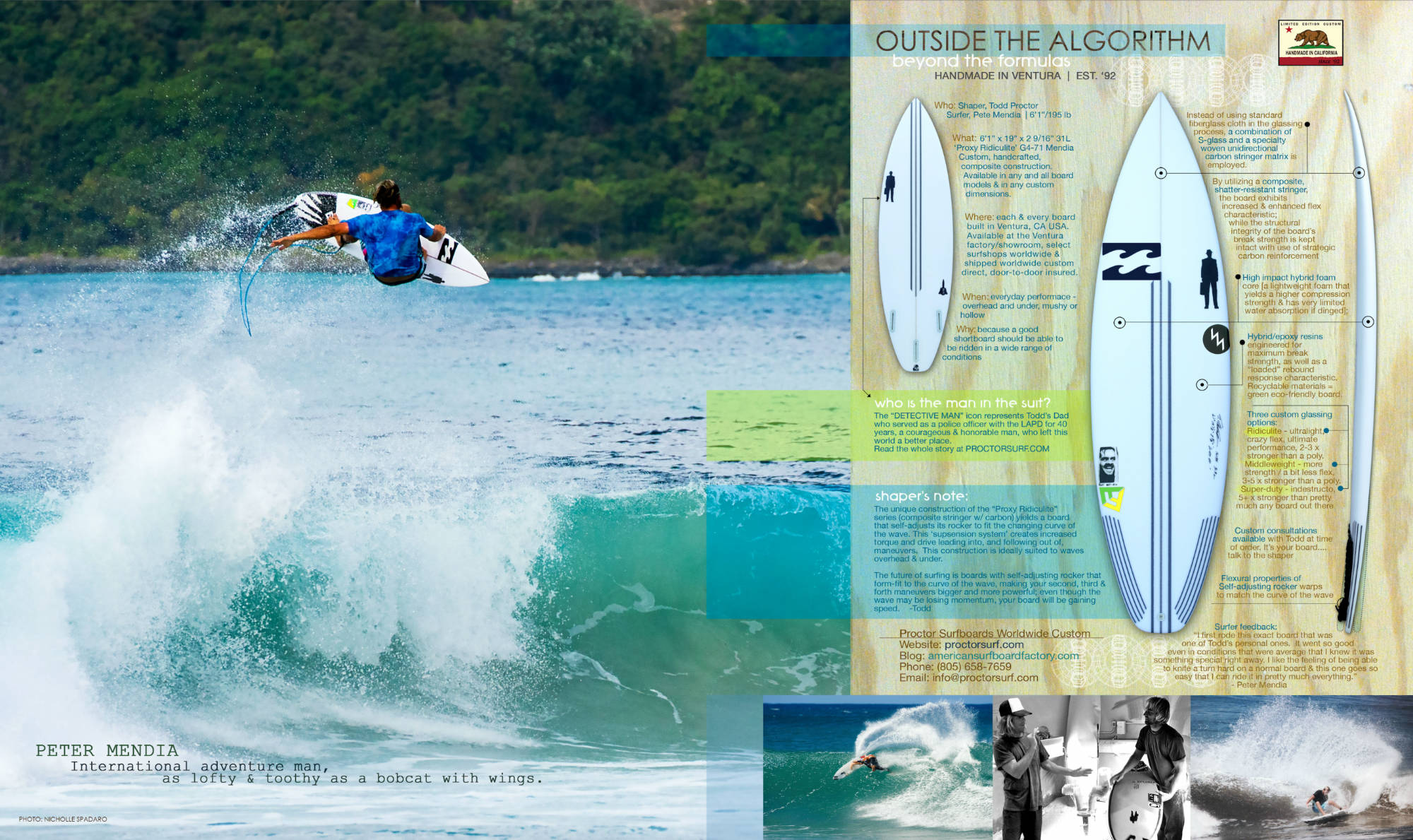 Inspired by the surfing of madman Pete Mendia, a board designed for timeless power surfing